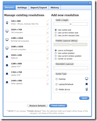 The cool part about this resizer is it’s ability to resize the window including or excluding the browser chrome, which is very helpful for previewing sites targeted for mobile devices.