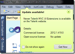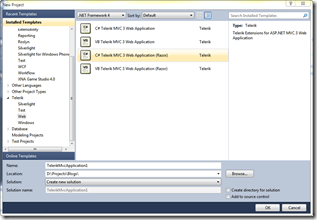 Telerik’s MVC extensions come with built in Visual Studio extensions to make project creation, and configuration, a snap. In addition, the extensions include a variety of project templates to help start new projects: