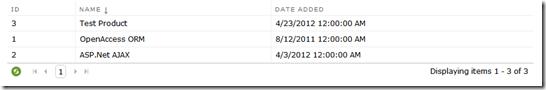 This small piece of code gives me a full featured grid with sorting, and paging: