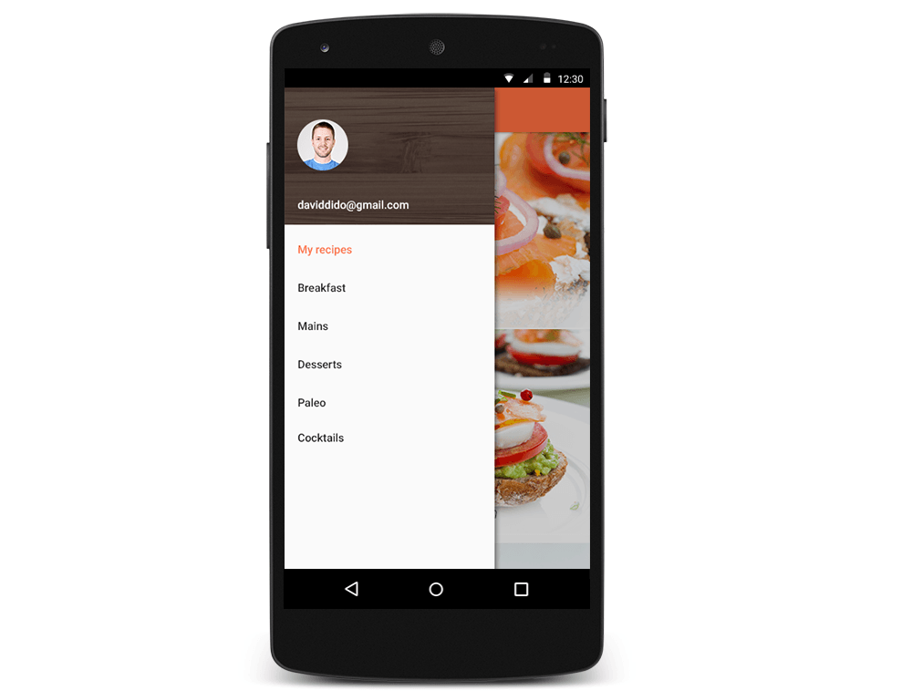 If you have played with the native Android NavigationDrawer before then the Telerik SideDrawer would feel very familiar. For those of you who are new to the subject, the SideDrawer is a panel that slides on top of the main application screen and presents the app’s navigation. The goal of the control is to enable quick and easy navigation across all levels of your app.