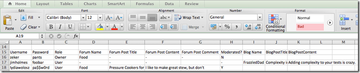 The problem with this approach is it badly mixes different concerns. You have mixed types of behaviors going on, you have mixed types of content being generated, and you’re working through different permission scenarios with different roles.  Your actual test script will have to use multiple conditional statements to branch off appropriately based on the specific scenario you’re working through. (Conditionals can explode the complexity of software and test cases. Read up on cyclomatic complexity for more background information.)