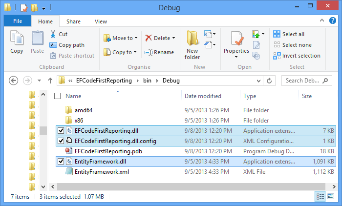 Build the EFCodeFirstReporting project, and open the bin folder for your build in file explorer. Copy the following files: