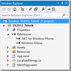 Figure 1: Default Solution Explorer for Windows Phone 8 in Visual Studio 2013 Preview