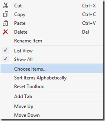You can easily add RadControls for Windows Phone 8 back by right clicking anywhere in the Toolbox and selecting Choose Items as shown in Figure 3.