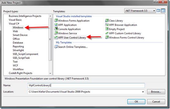 With that out of the way, we now need to get our WPF control setup so we can use it in the application.  We accomplish this by adding a new WPF User Control Library project to the current solution.