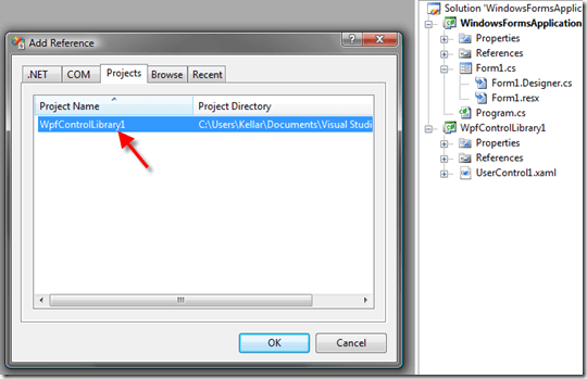 Now that we have our WPF control created, we need to add a reference to the WPF Control Library from our Windows Forms application.