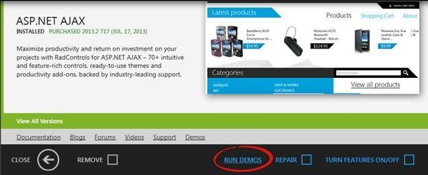 Telerik Control Panel gives you more than product installations – you can now also use it as a central hub to launch all the demos, solutions or applications that you desire. This feature also improves the product installation experience, because it immediately gives you access to the samples or applications directly in the UI once your installation(s) are complete.