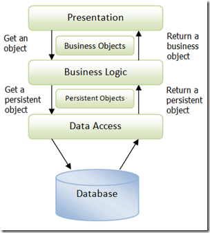• The data access layer retrieves persistent objects from the Database and returns them to the BLL;