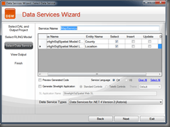 OpenAccess provides the Data Service Wizard, which makes service layer creation extremely easy. If you have never used the data service wizard a good guide is available here. For this example I used DataServices V2, and made all of my entities read-only.