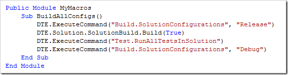 Well, no more! Don't worry, I'm not transforming you into TeamBuild :-). Instead I will offer a small macro which can mitigate some of the pre check-in pain. Here's how to do it: