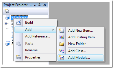 2) Next you will need to add a new module to the "My Macros" project. Check this screen: