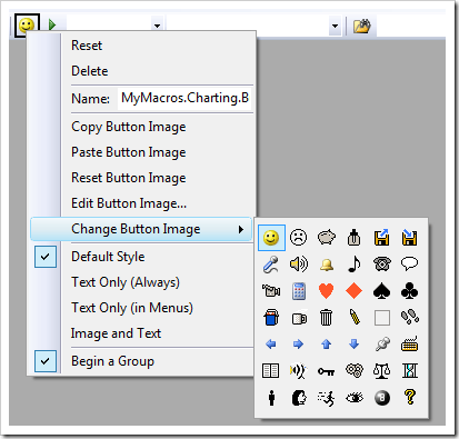 4) Now it is time to create a convenient toolbar button for that macro. To do it: right-click on the toolbar to customize it and drag the macro from the commands screen to the toolbar to create a new item.