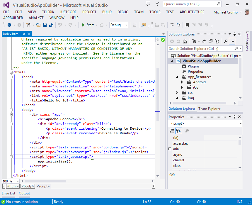 AppBuilder allows developers from a variety of backgrounds and technologies to build mobile apps. We realize that most companies have developers with many backgrounds. From web to .NET, they can join forces and develop great looking apps. Your web developer, may jump straight into the browser and begin building your companies first cross-platform app using AppBuilder and your .NET developer can download the extension and continue working on that same app inside of Visual Studio. Whatever the case may be, you can gather your own team of Avengers and build a successful app.