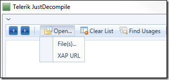JustDecompile has no problem decompiling a Windows Phone XAP file either. To test out this functionality, I found a free Windows Phone application I wrote a while back to see if I could peek inside of it. I used Open… | File(s)… instead of XAP URL.