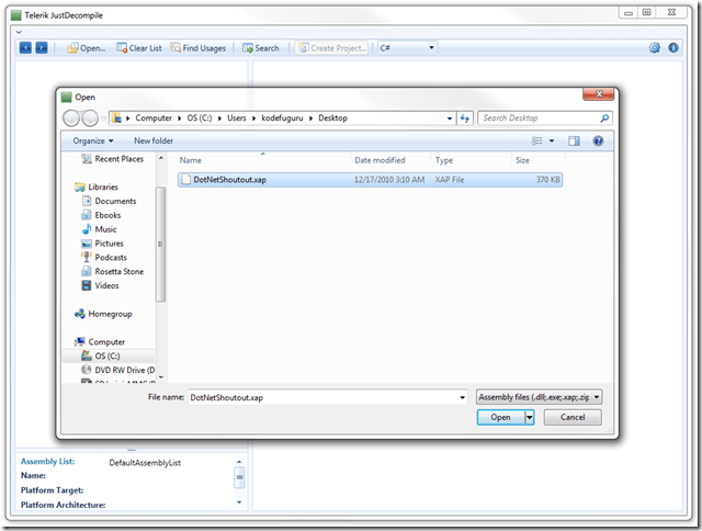 We’ve added support for Silverlight XAP decompilation. This works from both your local file system and the web. First, let’s take a look at how you open a Silverlight file hosted on a website.