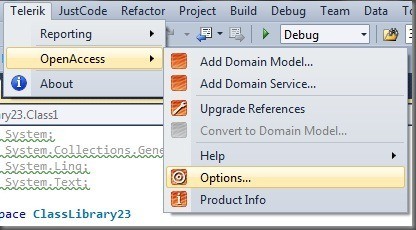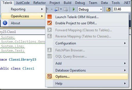 In your existing projects the upgrade to the new version can be done by using the ‘Check Settings’ wizard, which will replace the references to the old OpenAccess version with references to new version. Additionally you have to re-enable the old menu entries. To make the old menu visible please open the Options Dialog from the Telerik OpenAccess menu and specify ‘Show Old menu entries…’ in the ‘General’ tab.