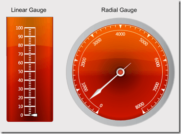 So in just a few seconds of coding, I am almost done with a basic RadGauge in my application.  My final touch is to add an indicator to the gauge to point to the appropriate values.  So my next step is to add a single needle indicator to my gauge.