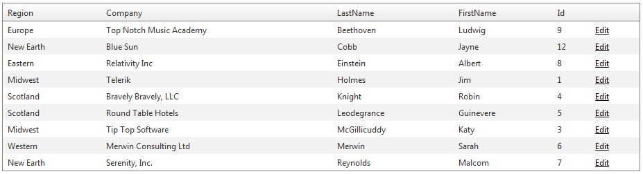 The following example shows a different way of interacting with the Grid on the page. In this case, we’ve stored the grid in the Element Repository and are able to extract it as a strongly typed object. We’re then looking for elements containing the text we’re looking for. This will effectively pull us off two table cell elements—this entire test scenario is predicated on us making these decisions based on our knowledge of the baseline dataset, and the absolute trust that we don’t have to worry about pulling off some other element(s) in the table.
