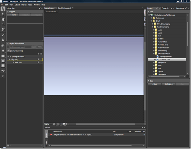 • Open the same solution in both Expression Blend and Visual Studio 2008 (for the time being keep the offending xaml file closed).