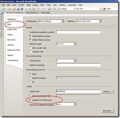 You will see a checkbox named “Make assembly COM-visible”. The checkbox must be checked.