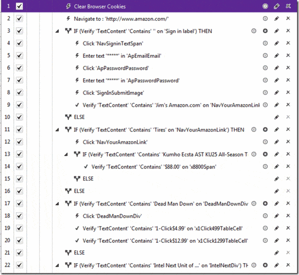 Additionally, IF statements are also bad practice in that they often mix several concerns. The test above checks at least three different test flows (tires, videos, computer supplies), plus logging on if needed. Mixed concerns indicate the test case isn’t well-focused—it’s working on too many things at once. A failure in one section of this will likely mask potential failures in other areas.