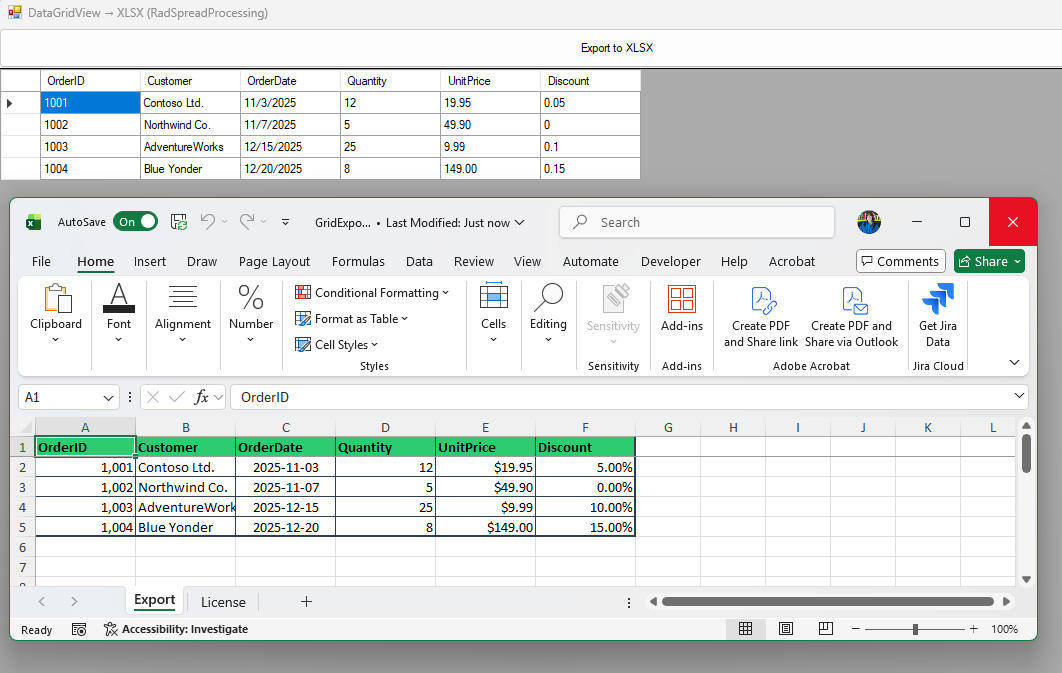 - Use RadSpreadProcessing to export data from the DataGridView to an Excel file.
