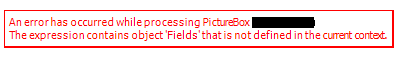 When i preview a report in the Designer I get an error in a PictureBox that has some conditional formatting depending on the values from the Datasource (see attach).