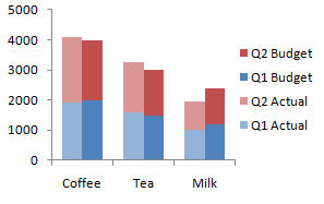 I'm trying to implement exactly same thing in silverlight (sigh!) and it works except palette part. Ideally I'd like to have a separate palette for each series group, but it would do if each series would use different colour (like in your example). In my case though the colour is applied on group basis, i.e. my left and right bars are in different colours but I don't see stacked items. Is there a way to achieve this? Tried to search but found nothing...