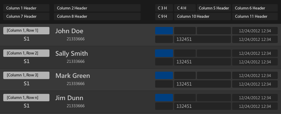 I need to do some customization on the header row and not sure if this is possible. Please take a look at the attached image. My rows are 2-lines type including my header row. Do you think this is possible on header row with custom row template?