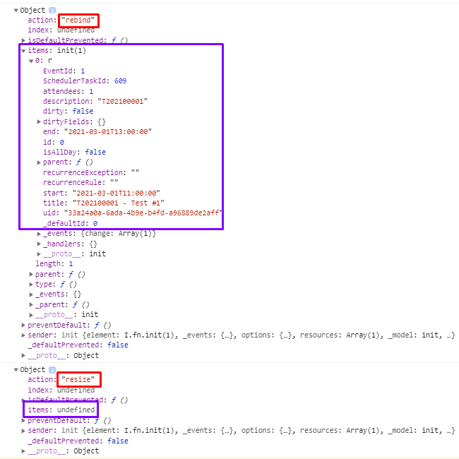 At the moment I have no items in the Scheduler. After investigating I came to the conclusion there are 2 types of e given from the scheduler. I know because I handled the databound like this: