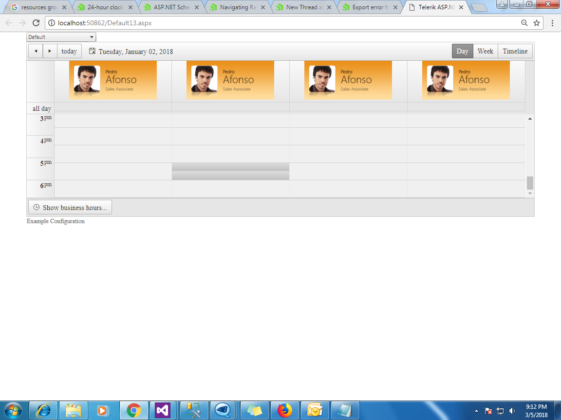 SelectedView="DayView" DataRecurrenceParentKeyField="RecurrenceParentID" AllowInsert="true" OnAppointmentUpdate="RadScheduler1_AppointmentUpdate" OnAppointmentDelete="RadScheduler1_AppointmentDelete" OnAppointmentInsert="RadScheduler1_AppointmentInsert" OnResourceHeaderCreated="RadScheduler1_ResourceHeaderCreated"