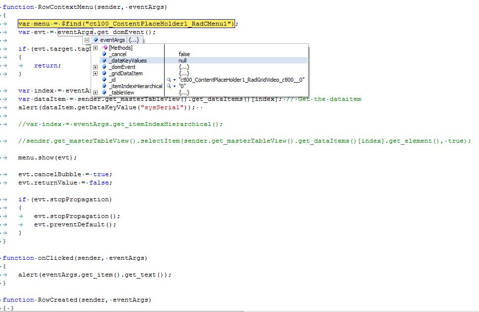 | function RowContextMenu(sender, eventArgs) { |