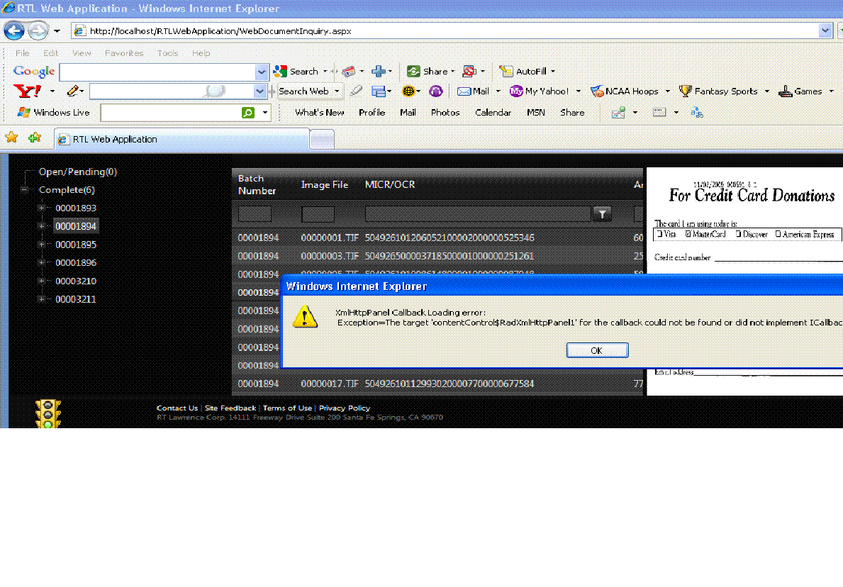 Exception=The target 'contentControl$RadXmlHttpPanel1' for callback could not be found or did not implement ICallBackEventHandler (screenshot attached). I am following your TELERIK.SALESDASHBOARD demo with some modifications. Below are the source codes that cause this error