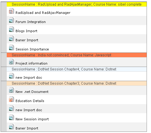 <telerik:GridGroupByField FieldName="SessionName" SortOrder="Descending" FieldAlias="SessionName" FormatString="" HeaderText=""></telerik:GridGroupByField>