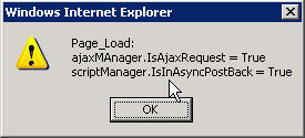 protected void Page_Load(object sender, EventArgs e){ RadAjaxManager ajaxManager = RadAjaxManager.GetCurrent(this); ScriptManager scriptManager = ScriptManager.GetCurrent(this); ajaxManager.AjaxSettings.AddAjaxSetting(BandQualificationsFormDetails, PanelCadetSelectionList); ajaxManager.AjaxSettings.AddAjaxSetting(BandQualificationsFormDetails, BandQualificationsFormDetails); ajaxManager.Alert(string.Format("Page_Load: \najaxMAnager.IsAjaxRequest = {0} \nscriptManager.IsInAsyncPostBack = {1}", ajaxManager.IsAjaxRequest, scriptManager.IsInAsyncPostBack));When I select a value in a combobox in the web user control BandQualificationsFormDetails. (errorajax2)