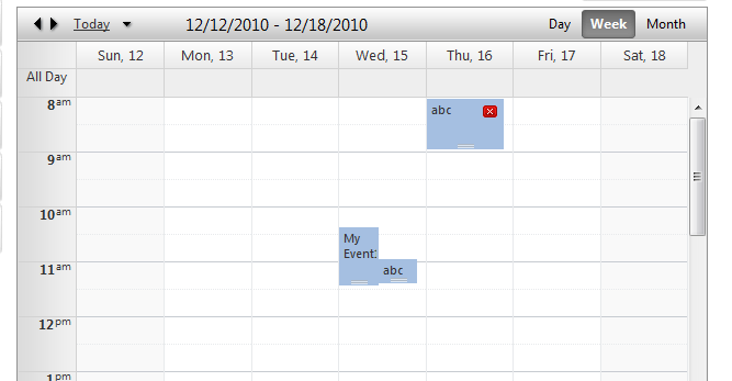 <telerik:RadScheduler ID="rdsCalender" SelectedView="WeekView" runat="server" DataEndField="EventDateTo" DataKeyField="EventID"