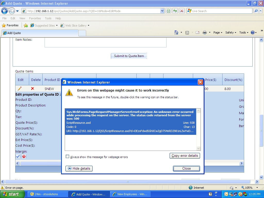 I have got an javascript error with the radgridview.The scenario is that i have a radgridview,which have edit/delete/update option.The issue is that when i do some edit and then press update,i got an javascript error in ie.i have attached the screen short of this.please provide help why it is happening.