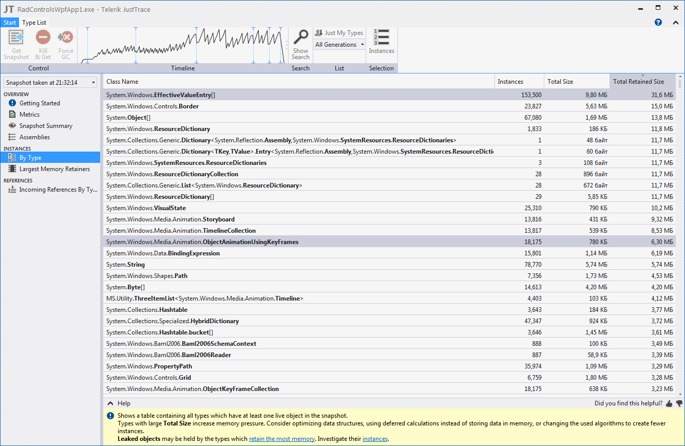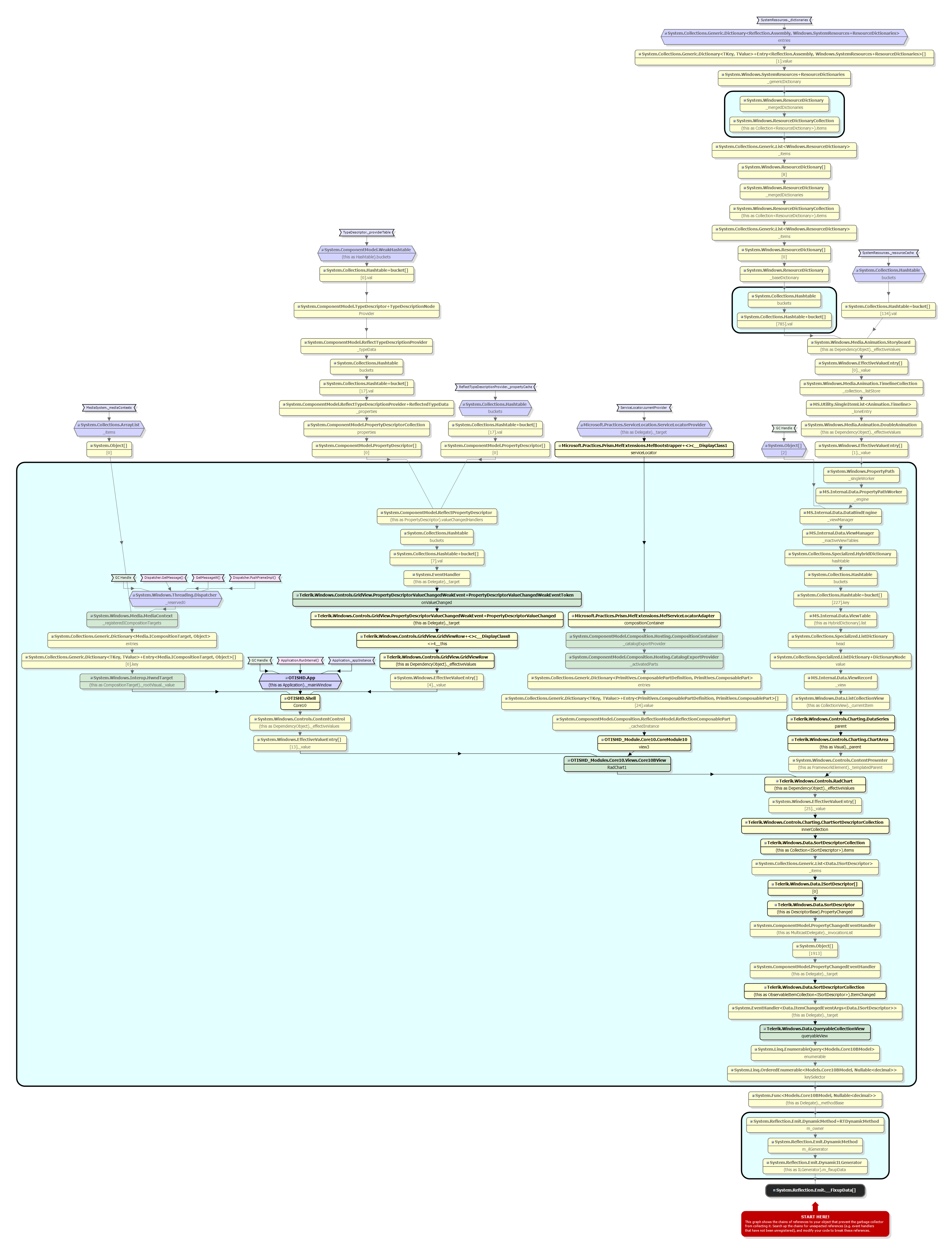I am running into memory leaks using the RadGridView. The first scenario is straight forward, I am binding to a ViewModel’s Observable Collection but when I update the Collection it does not release the memory for the old objects. The second scenario I have created DataTemplate with Textbox’s in the rows and the RadGridView will not release the textbox’s.