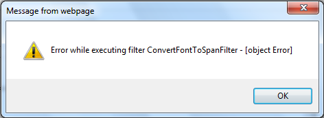 Error while executing filter ConvertFontToSpanFilter - [object Error]