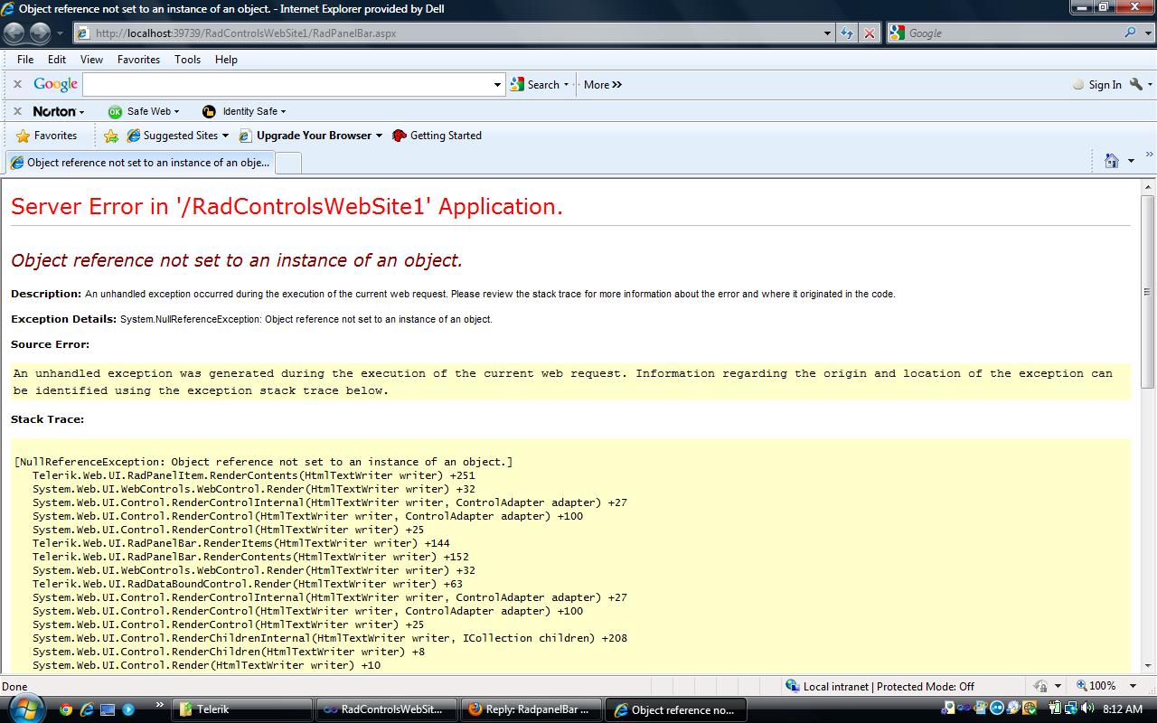 I am trying to follow the sample that you have attached in this reply. Only I had changed in the RadPanelBar DataBound Event, I am trying to set the HeaderTemplate for each RadPanelItem, but getting a null reference error. Whereas if I try to set ItemTemplate instead of HeaderTemplate it is working fine. But as per my requirement, I need to have a HeaderTemplate set for each Panel Item dynamically.