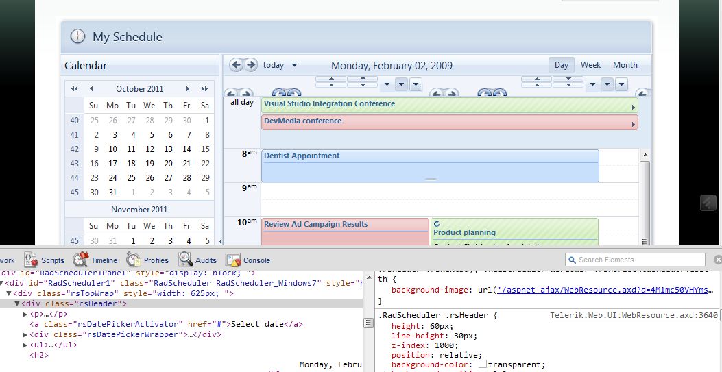 However, I suggest that you are going to have to do a lot of other tweaking to get things working the way you want as the background-image and, I suspect, a number of contained controls in the header, are styled on the assumption of a given height. As an example, SS1.jpg shows the Scheduler from this demo page as is is defined and SS2.jpg shows it with just the height of that item changed.