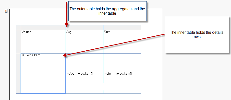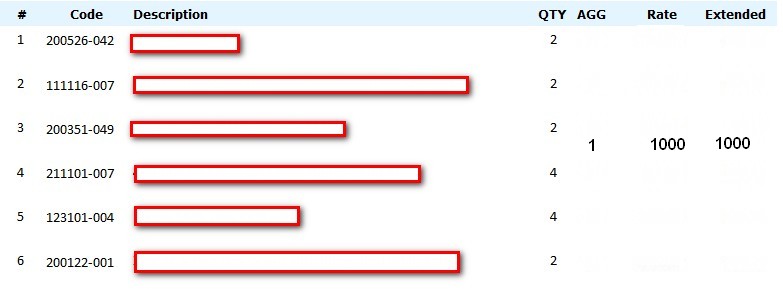 I am working on invoice for bundle items , need to group the last three column as shown in the attachment. "AGG" column shows the no.of bundles (i.e. 1 here) and in the next two columns need to show the sum ( appx. 1000). can you suggest how to achieve the design as shown in the attachment.