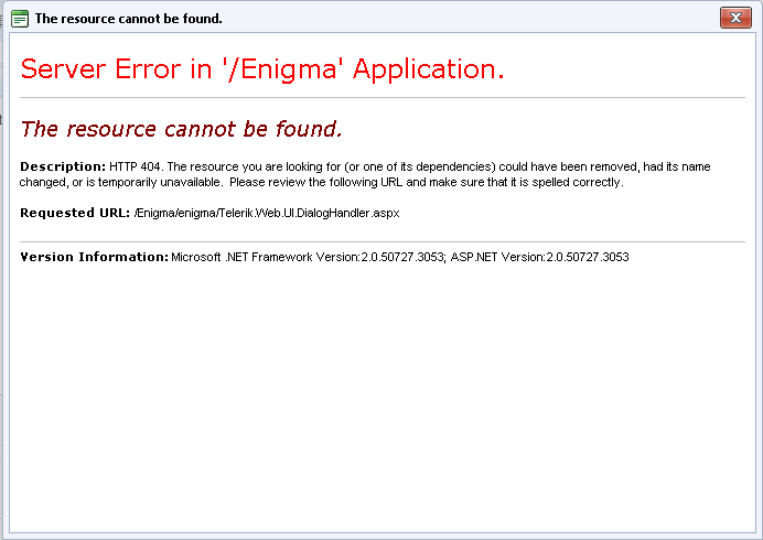 When I open the dialog Image Manager/HyperLink Manager/ Flash Manager, it gives error "Resource can not found (/Telerik.Web.UI.DialogHandler.aspx)" but when I add the handler in web.config file it works fine.