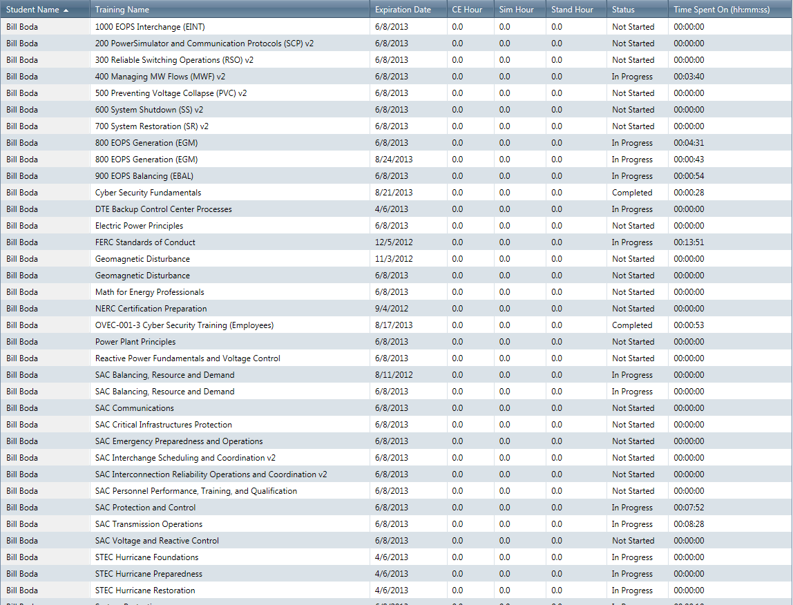 <telerik:RadGrid runat="server" ID="RadGrid_CompletedTrainingReport" OnNeedDataSource="RadGrid_CompletedTrainingReport_NeedDataSource" OnDetailTableDataBind="RadGrid_CompletedTrainingReport_OnDetailTableDataBind" OnItemCreated="RadGrid_CompletedTrainingReport_OnItemCreated" ExportSettings-ExportOnlyData="true" ExportSettings-Excel-Format="Html" AllowSorting="true" EnableHeaderContextMenu="true" OnCustomAggregate="RadGrid_CompletedTrainingReport_OnCustomAggregate"> <MasterTableView DataKeyNames="TrainingTrackingID" Name="TrainingTrackings" AutoGenerateColumns="false" CommandItemDisplay="TopAndBottom" CommandItemSettings-ShowExportToExcelButton="true" CommandItemSettings-ShowAddNewRecordButton="false" ExpandCollapseColumn-Visible="true"> <Columns> <telerik:GridBoundColumn DataField="StudentFullname" HeaderText="Student Name" SortExpression="StudentLastname"> </telerik:GridBoundColumn> <telerik:GridBoundColumn DataField="TrainingName" HeaderText="Training Name"> </telerik:GridBoundColumn> <telerik:GridBoundColumn DataField="ILACode" HeaderText="ILA Code"> </telerik:GridBoundColumn> <telerik:GridBoundColumn DataField="CompletedDate" HeaderText="Completion Date"> </telerik:GridBoundColumn> <telerik:GridTemplateColumn HeaderText="Certificate Number"> <ItemTemplate> <asp:ImageButton ID="ImageButton_PrintCertificate" ImageUrl="~/images/Certificate.png" runat="server" AlternateText="Print Certificate"/> <asp:Label Text='<%# Eval("CertificationNumber") %>' runat="server" ID="Label_CertificateNumber"/> </ItemTemplate> </telerik:GridTemplateColumn> <telerik:GridBoundColumn DataField="CEHour" HeaderText="CE Hour"> </telerik:GridBoundColumn> <telerik:GridBoundColumn DataField="SimHour" HeaderText="Sim Hour"> </telerik:GridBoundColumn> <telerik:GridBoundColumn DataField="StandHour" HeaderText="Stand Hour"> </telerik:GridBoundColumn> <telerik:GridBoundColumn DataField="EOHour" HeaderText="EO Hour" Display="false"> </telerik:GridBoundColumn> <telerik:GridBoundColumn DataField="PJMHour" HeaderText="PJM Hour" Display="false"> </telerik:GridBoundColumn> <telerik:GridBoundColumn DataField="ProfHour" HeaderText="Prof Hour" Display="false"> </telerik:GridBoundColumn> <telerik:GridBoundColumn DataField="SOCCEDUploadMessage" HeaderText="SOCCED Message" HeaderStyle-Width="10%"> </telerik:GridBoundColumn> </Columns> <DetailTables> <telerik:GridTableView DataKeyNames="ID" Name="LessonTrackings" AutoGenerateColumns="false" ShowFooter="true"> <Columns> <telerik:GridBoundColumn DataField="Name" HeaderText="Name"> </telerik:GridBoundColumn> <telerik:GridBoundColumn DataField="Type" HeaderText="Type"> </telerik:GridBoundColumn> <telerik:GridBoundColumn DataField="Status" HeaderText="Status"> </telerik:GridBoundColumn> <telerik:GridTemplateColumn HeaderText="Score"> <ItemTemplate> <asp:HyperLink ID="HyperLink_Score" CssClass="HyperLink_Score_Class" runat="server" Text='<%# Eval("Score") %>'/> </ItemTemplate> </telerik:GridTemplateColumn> <telerik:GridTemplateColumn DataField="SecondsOn" HeaderText="Time Spent On (hh:mm:ss)" Aggregate="Custom" FooterText="Total Time: "> <ItemTemplate> <asp:Label runat="server" ID="Label_SecondsOn"/> </ItemTemplate> </telerik:GridTemplateColumn> </Columns> </telerik:GridTableView> </DetailTables> </MasterTableView></telerik:RadGrid>protected void RadGrid_CompletedTrainingReport_OnItemCreated(object sender, GridItemEventArgs e){ if (e.Item is GridDataItem) { GridDataItem gdi = (GridDataItem)e.Item; if (gdi.OwnerTableView.Name == "Registrations") { if (gdi.DataItem is spTrainingStatusReport_Result) { var spTrainingStatusReport_Result = (spTrainingStatusReport_Result)gdi.DataItem; var Label_SecondsOn = (Label)gdi.FindControl("Label_SecondsOn"); var SecondsOnTimespan = new TimeSpan(0, 0, spTrainingStatusReport_Result.SecondsOnTraining); Label_SecondsOn.Text = SecondsOnTimespan.ToString("c"); } } }}Thanks for any help!