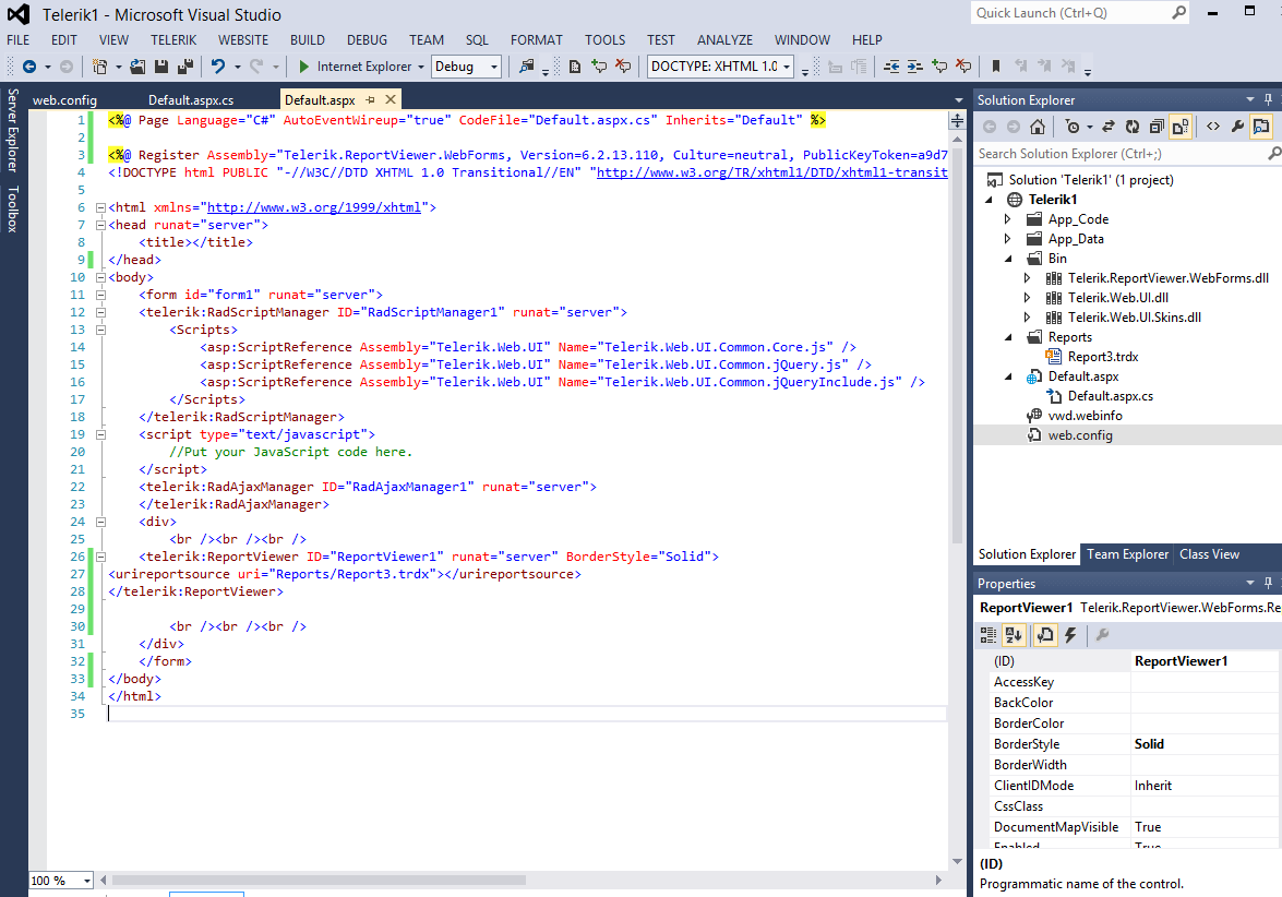 The web.config file source code is included below. The report uses the AdventureWorks database and produces a simple listing of the products in the database.