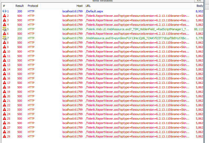 <?xml version="1.0"?><configuration> <appSettings> <add key="Telerik.Skin" value="Metro"/> <add key="Telerik.ScriptManager.TelerikCdn" value="Disabled"/> <add key="Telerik.StyleSheetManager.TelerikCdn" value="Disabled"/> </appSettings> <system.web> <compilation debug="false" targetFramework="4.5"> <assemblies> <add assembly="Microsoft.ReportViewer.WebForms, Version=11.0.0.0, Culture=neutral, PublicKeyToken=89845DCD8080CC91"/> <add assembly="Microsoft.ReportViewer.Common, Version=11.0.0.0, Culture=neutral, PublicKeyToken=89845DCD8080CC91"/> <add assembly="Microsoft.Build.Framework, Version=4.0.0.0, Culture=neutral, PublicKeyToken=B03F5F7F11D50A3A"/> <add assembly="Telerik.Reporting, Version=6.2.13.110, Culture=neutral, PublicKeyToken=a9d7983dfcc261be"/> </assemblies> </compilation> <httpRuntime targetFramework="4.5"/> <pages> <controls> <add tagPrefix="telerik" namespace="Telerik.Web.UI" assembly="Telerik.Web.UI"/> </controls> </pages> <httpHandlers> <add path="ChartImage.axd" type="Telerik.Web.UI.ChartHttpHandler" verb="*" validate="false"/> <add path="Telerik.Web.UI.SpellCheckHandler.axd" type="Telerik.Web.UI.SpellCheckHandler" verb="*" validate="false"/> <add path="Telerik.Web.UI.DialogHandler.aspx" type="Telerik.Web.UI.DialogHandler" verb="*" validate="false"/> <add path="Telerik.RadUploadProgressHandler.ashx" type="Telerik.Web.UI.RadUploadProgressHandler" verb="*" validate="false"/> <add path="Telerik.Web.UI.WebResource.axd" type="Telerik.Web.UI.WebResource" verb="*" validate="false"/> <add path="Telerik.ReportViewer.axd" verb="*" type="Telerik.ReportViewer.WebForms.HttpHandler, Telerik.ReportViewer.WebForms, Version=x.x.x.x, Culture=neutral, PublicKeyToken=a9d7983dfcc261be"/> </httpHandlers> <httpModules> <add name="RadUploadModule" type="Telerik.Web.UI.RadUploadHttpModule"/> <add name="RadCompression" type="Telerik.Web.UI.RadCompression"/> </httpModules> </system.web> <system.webServer> <modules runAllManagedModulesForAllRequests="true"> <remove name="RadUploadModule"/> <add name="RadUploadModule" type="Telerik.Web.UI.RadUploadHttpModule" preCondition="integratedMode"/> <remove name="RadCompression"/> <add name="RadCompression" type="Telerik.Web.UI.RadCompression" preCondition="integratedMode"/> </modules> <handlers> <remove name="ChartImage_axd"/> <add name="ChartImage_axd" path="ChartImage.axd" type="Telerik.Web.UI.ChartHttpHandler" verb="*" preCondition="integratedMode"/> <remove name="Telerik_Web_UI_SpellCheckHandler_axd"/> <add name="Telerik_Web_UI_SpellCheckHandler_axd" path="Telerik.Web.UI.SpellCheckHandler.axd" type="Telerik.Web.UI.SpellCheckHandler" verb="*" preCondition="integratedMode"/> <remove name="Telerik_Web_UI_DialogHandler_aspx"/> <add name="Telerik_Web_UI_DialogHandler_aspx" path="Telerik.Web.UI.DialogHandler.aspx" type="Telerik.Web.UI.DialogHandler" verb="*" preCondition="integratedMode"/> <remove name="Telerik_RadUploadProgressHandler_ashx"/> <add name="Telerik_RadUploadProgressHandler_ashx" path="Telerik.RadUploadProgressHandler.ashx" type="Telerik.Web.UI.RadUploadProgressHandler" verb="*" preCondition="integratedMode"/> <remove name="Telerik_Web_UI_WebResource_axd"/> <add name="Telerik_Web_UI_WebResource_axd" path="Telerik.Web.UI.WebResource.axd" type="Telerik.Web.UI.WebResource" verb="*" preCondition="integratedMode"/> <add name="Telerik.ReportViewer.axd_*" path="Telerik.ReportViewer.axd" verb="*" type="Telerik.ReportViewer.WebForms.HttpHandler, Telerik.ReportViewer.WebForms, Version=x.x.x.x, Culture=neutral, PublicKeyToken=a9d7983dfcc261be" preCondition="integratedMode"/> </handlers> <validation validateIntegratedModeConfiguration="false"/> </system.webServer></configuration>