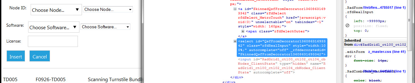 2. Firebug showing in the HTML that ComboBox renders both Simple AND Full