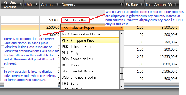 Any idea how can I display only currency code (instead of all columns of ComboBox) in GridView currency column Telerik team?