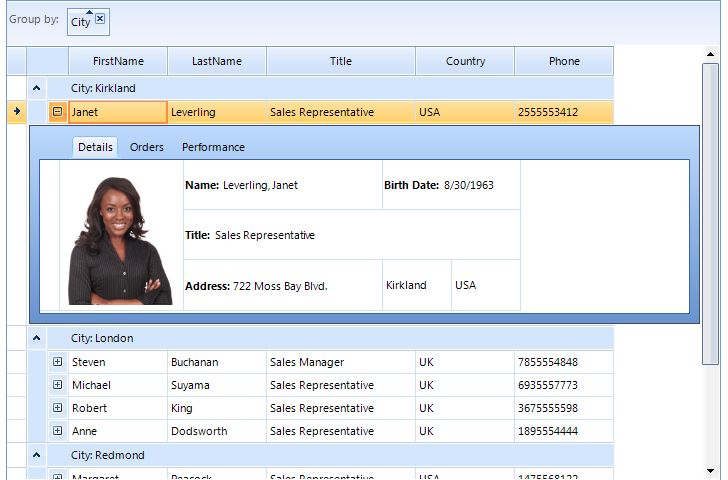I want to develop GridView Hierarchy some thing like this http://www.telerik.com/help/winforms/gridview-overview.html. (Panel In GridView)