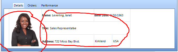 The Image is in left side & all the other information's are in Right (Tabular format, not is one Row).